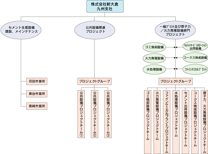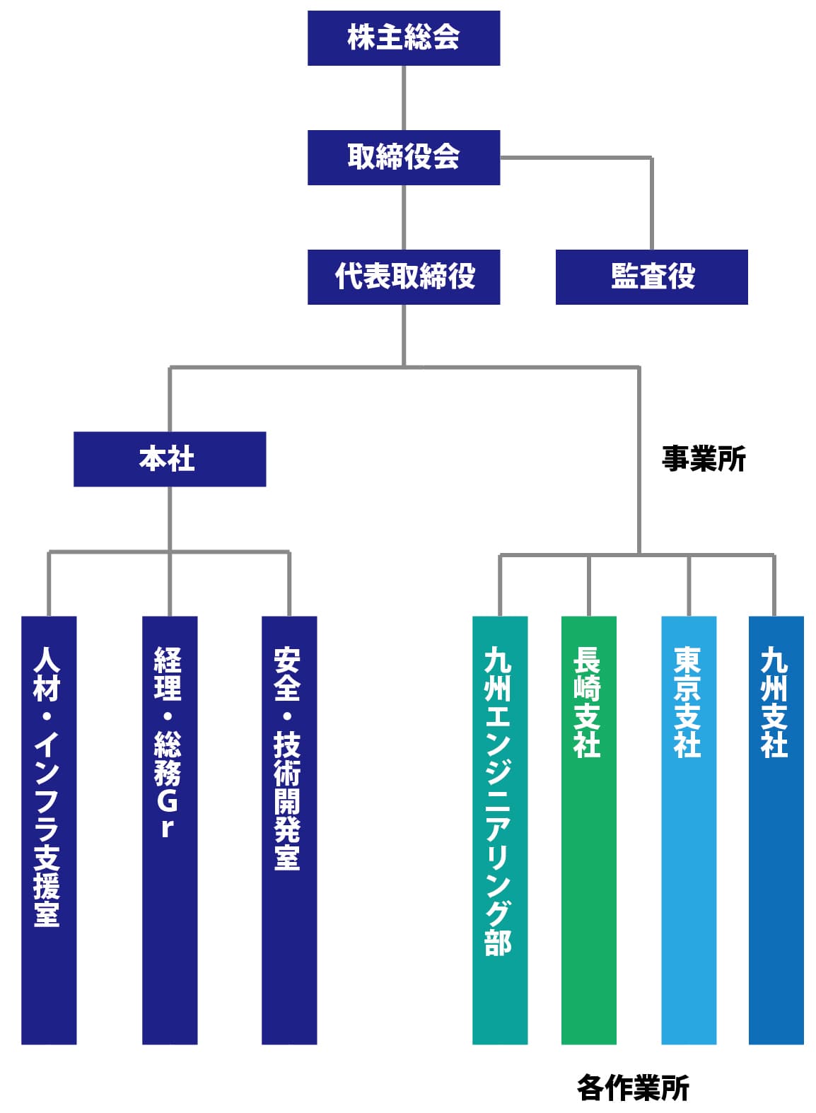 総務、経理、安全・技術管理室、人材・インフラ支援室を設け、各事業部門の支援を行っております。