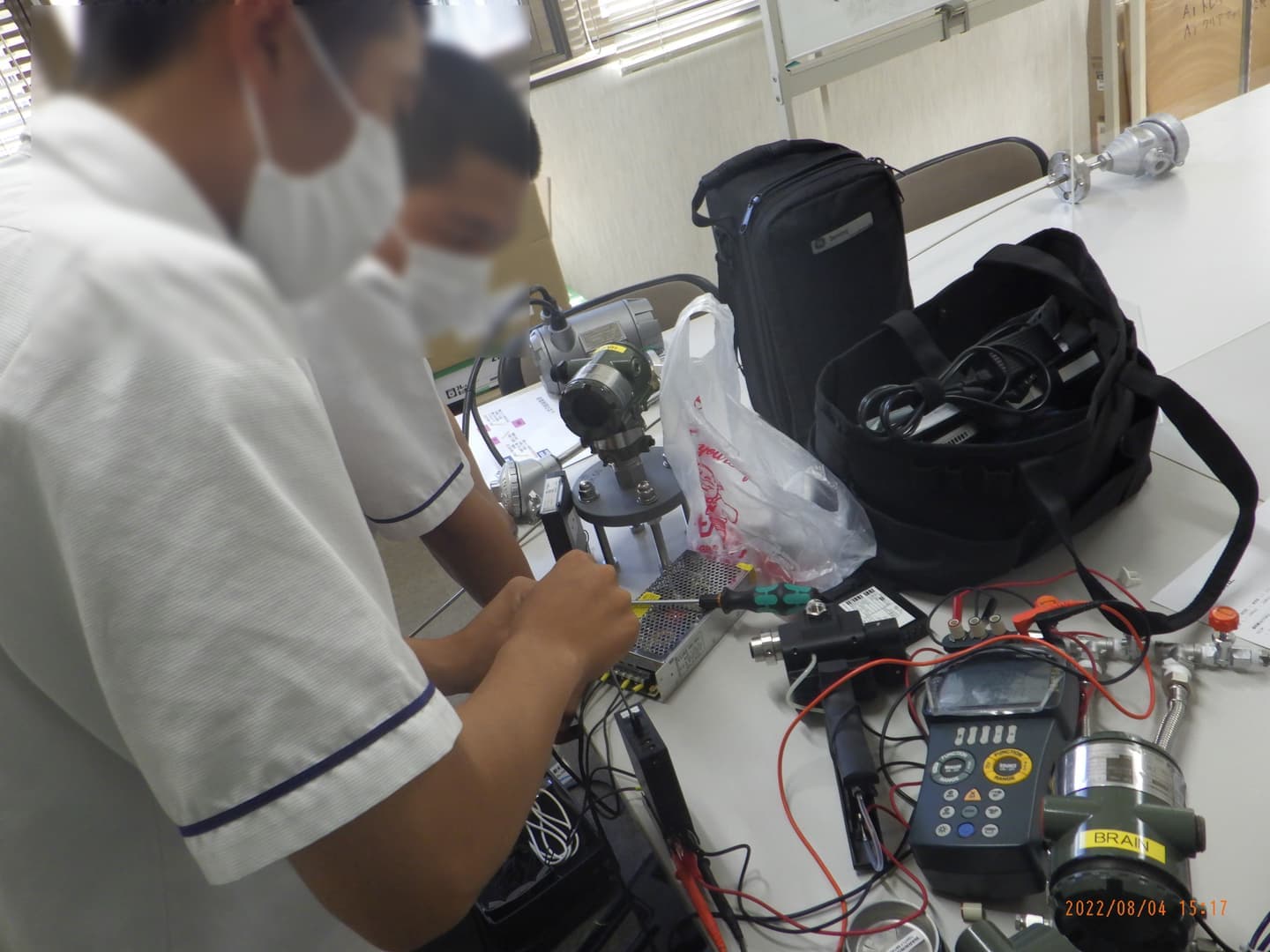 弊社社員の指導のもと、電気・電子科ではシーケンス制御や整流回路の製作、機械科では計装機器や電動機のメンテナンスといったことを中心に様々な経験を実習形式で取り組んで頂きました。