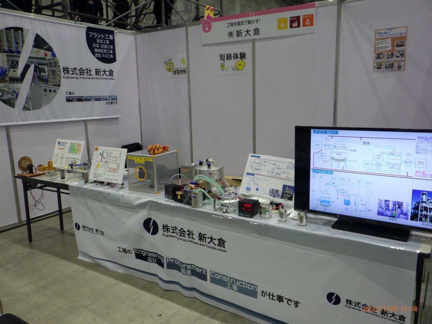 弊社ブースでは、感電体感装置、短絡体験、ミニチュア蒸留プラントを出展内容としました。
