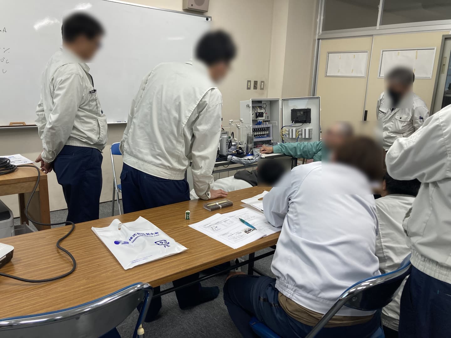 職業訓練では、電気工事の技能や知識がメインに行われており、就職先もプラント工事に関わる業種が多く、プラントの概要、プラント工事の業態・商流を中心に講義を行いました。
