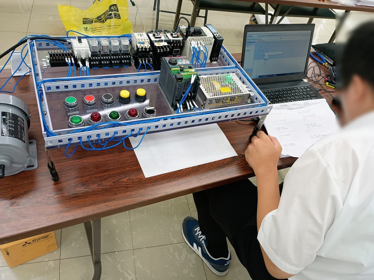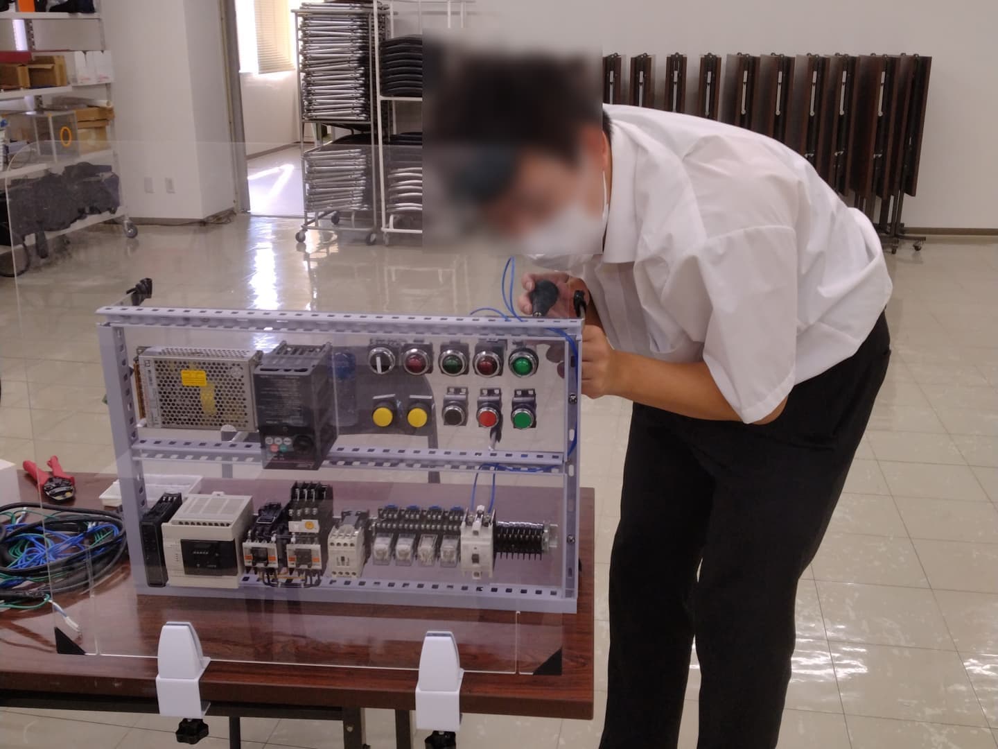 弊社社員の指導のもと、シーケンス回路、電気計測、電子回路の製作などを中心に実習形式で取り組んで頂きました。