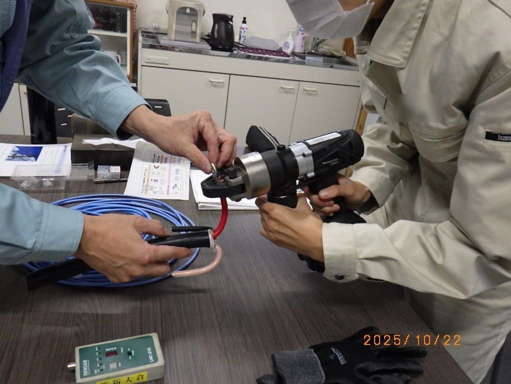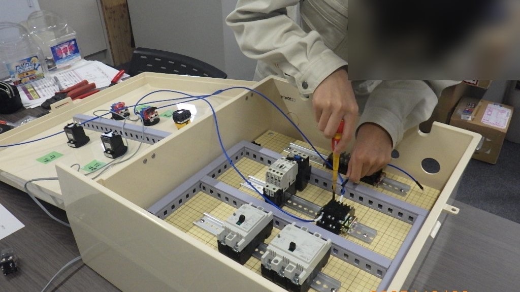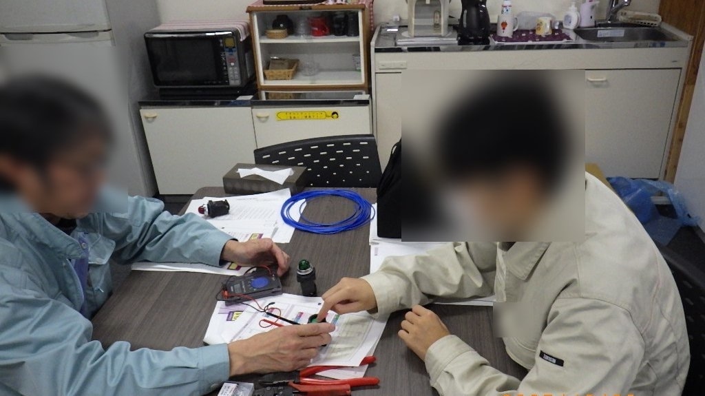 弊社社員の指導のもと、短絡・感電体験、電気計測、LANケーブル製作、シーケンス制御といったことを中心に様々な経験を実習形式で取り組んで頂きました。